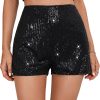 SweatyRocks Women’s Sequins High Elastic Waist Straight Leg Shorts Solid Glitter Party Shorts at Amazon Women’s Clothing store